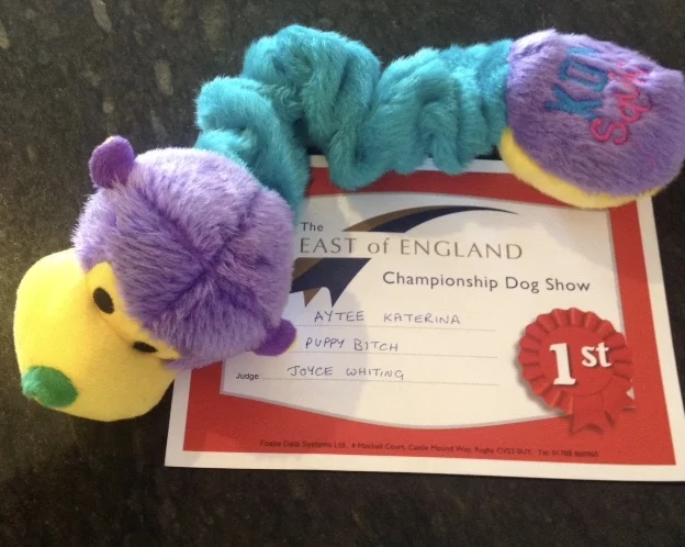 AYTEE KATERINA won Puppy Bitch and BEST PUPPY in breed at East of England Championship Show yesterday and got into the final cut for Best Puppy in Group. Also well done to AYTEE KALIMAR, better known as Doc who was 1st in Puppy Dog . A fantastic day and thankyou to the organisers and Judge for giving them the chance to shine.